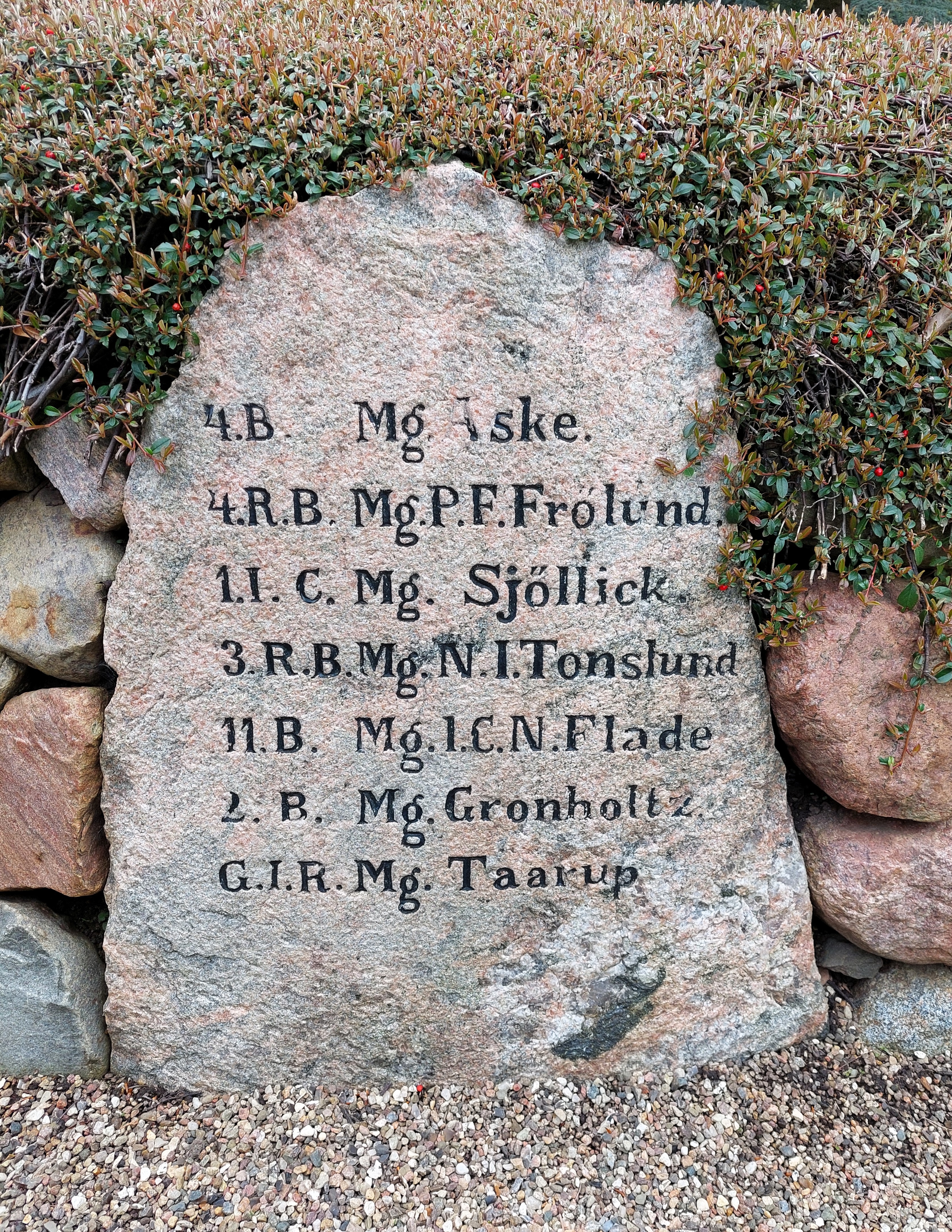 21. (IV, 5) Menig ved 11. Linjeinfanteribataljon, 3. kompagni, nr. 141 Jens Christian Nielsen, født 21. oktober 1823 i Flade, Flade sogn, Hjørring amt, død af brystbetændelse på Horsens lazaret 7. august 1848, begravet på Horsens kirkegård 9. august. Søn af gårdmand Niels Frederiksen og Karen Jensdatter.